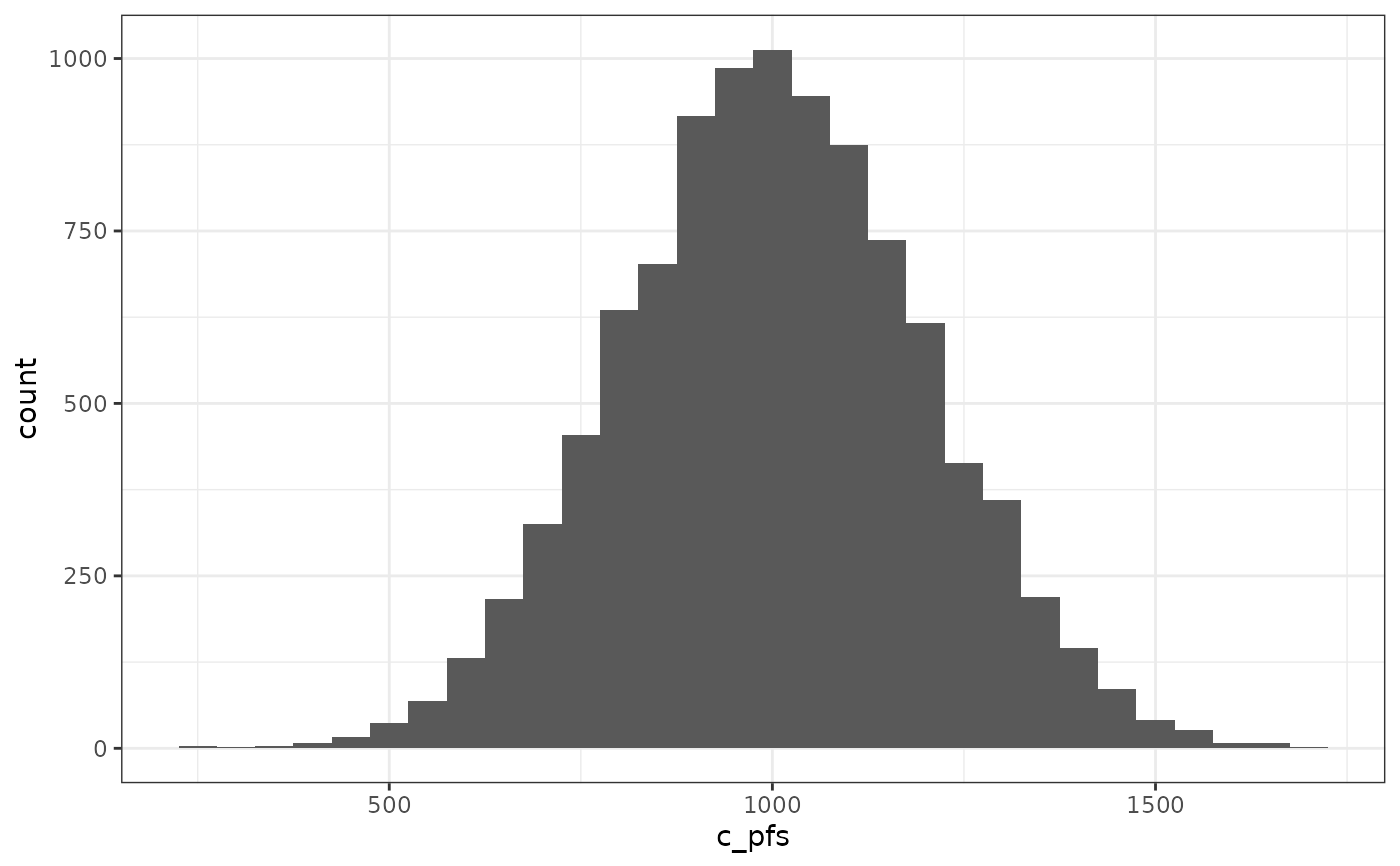 vis_1_param(df = df_pa, param = "c_pfs", binwidth = 50)